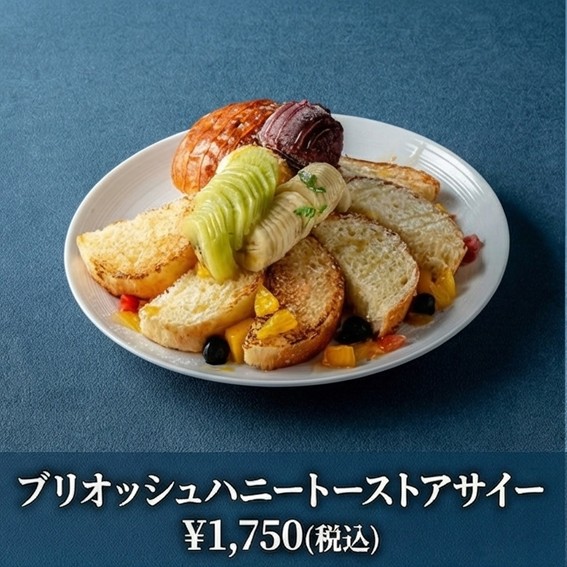 優雅なブランチプレート バター香るリッチなブリオッシュフレンチトーストに、冷たいアサイーアイスとたっぷりフルーツを添えました。