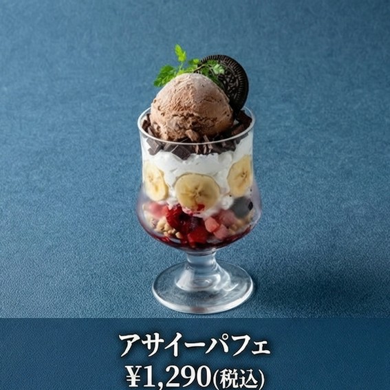濃厚なチョコアイスとアサイーの組み合わせがたまらない、スイーツ感たっぷりの贅沢パフェ。