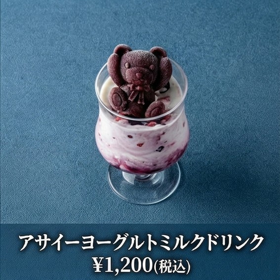 飲むひんやりアサイー グラスから顔を出す紫色のクマちゃん氷がとってもキュート!