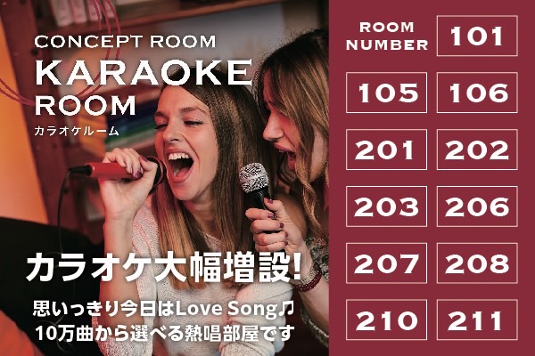 4月9日より人気のカラオケが増設♪(101・105・106・201・202・20・206・207・208・210・211・212)
