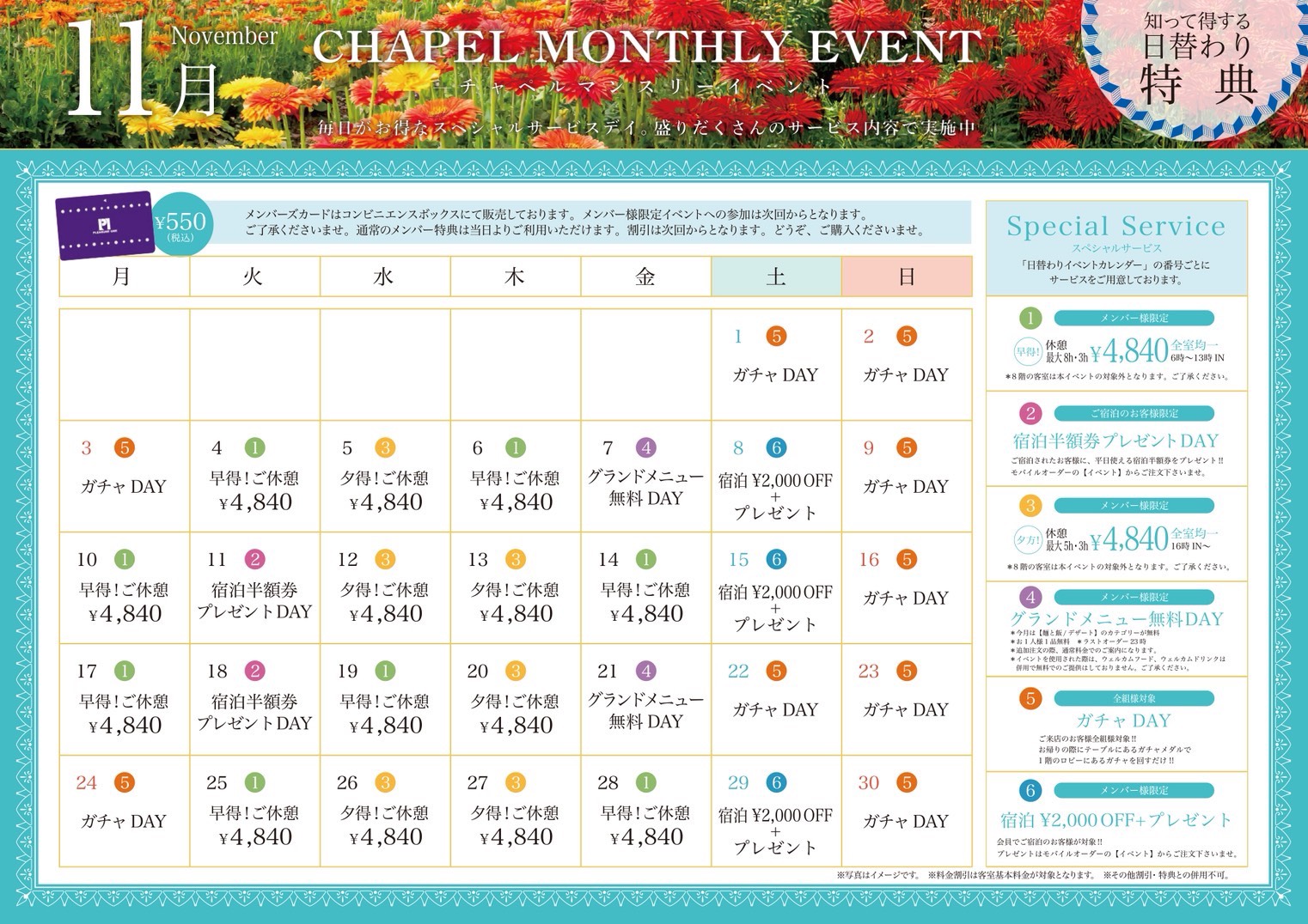 ホテル アクア・キッス 守山店11月マンスリーイベント開催中!!!