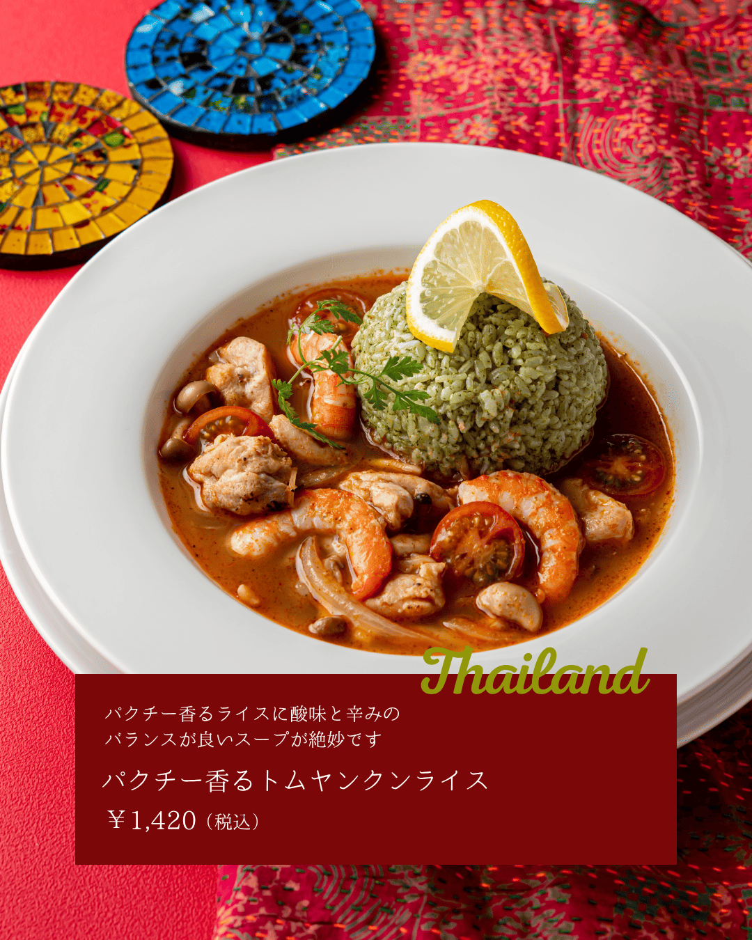 カオマンガイやビリヤニ、流行りのバインミーにヘルシーなヤムウンセンなど、まるで東南アジアを旅行している気分♪