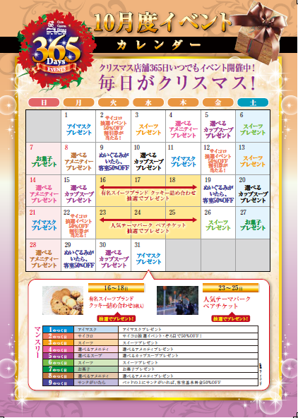 10月度365日毎日がイベント実施中!!!(/・ω・)/