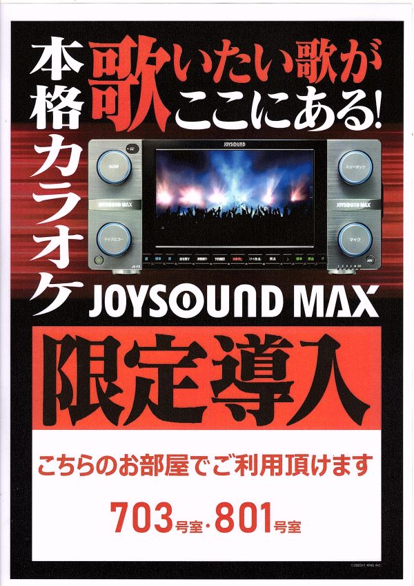 ご要望の多かった、最新カラオケJOY SOUND MAXを