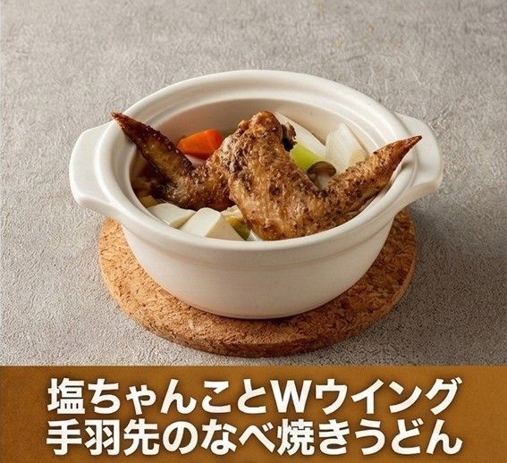 ボリューム満点の手羽先とうどんをハフハフと楽しむ、