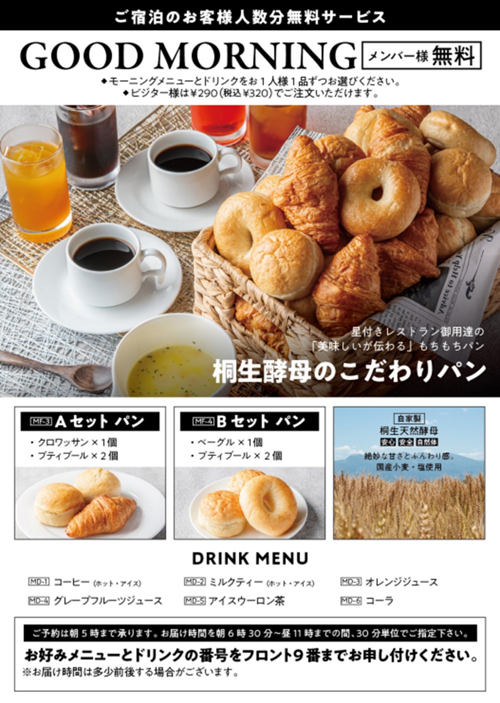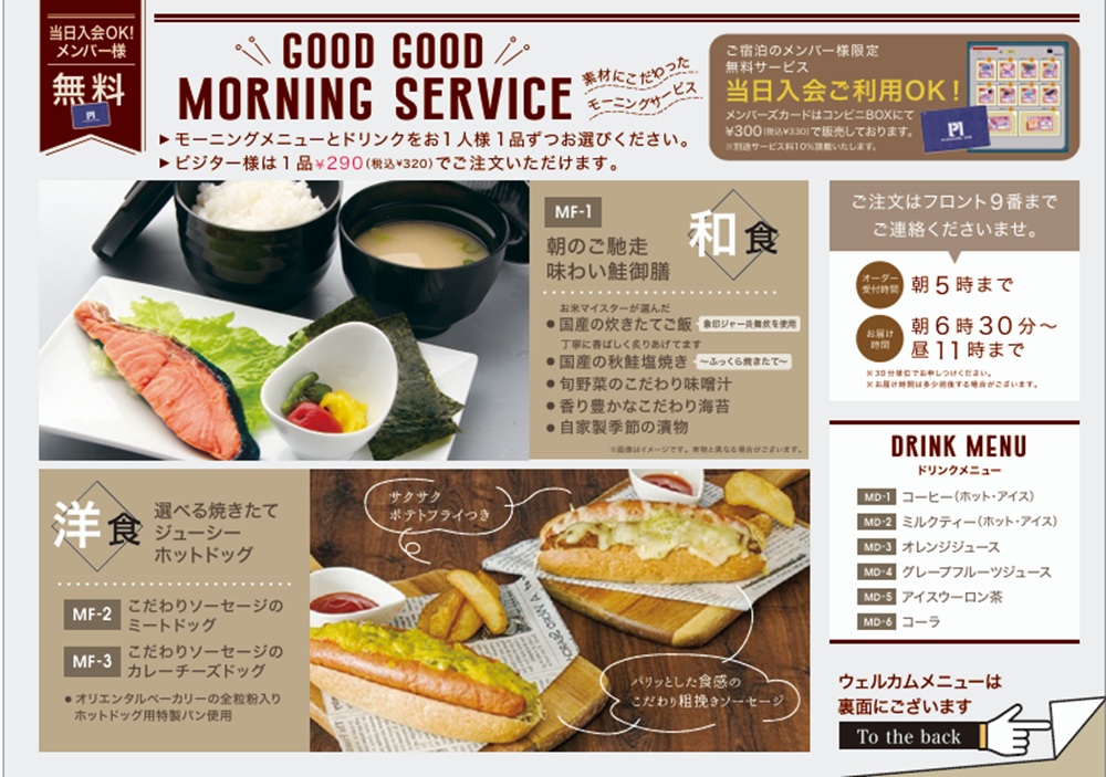 メンバー様が絶対お得‼WELCOME MENU&DRINK&MORNINGがリニューアル‼