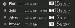 ・ご来店回数に応じて割引が発生! Discounts based on the number of visits