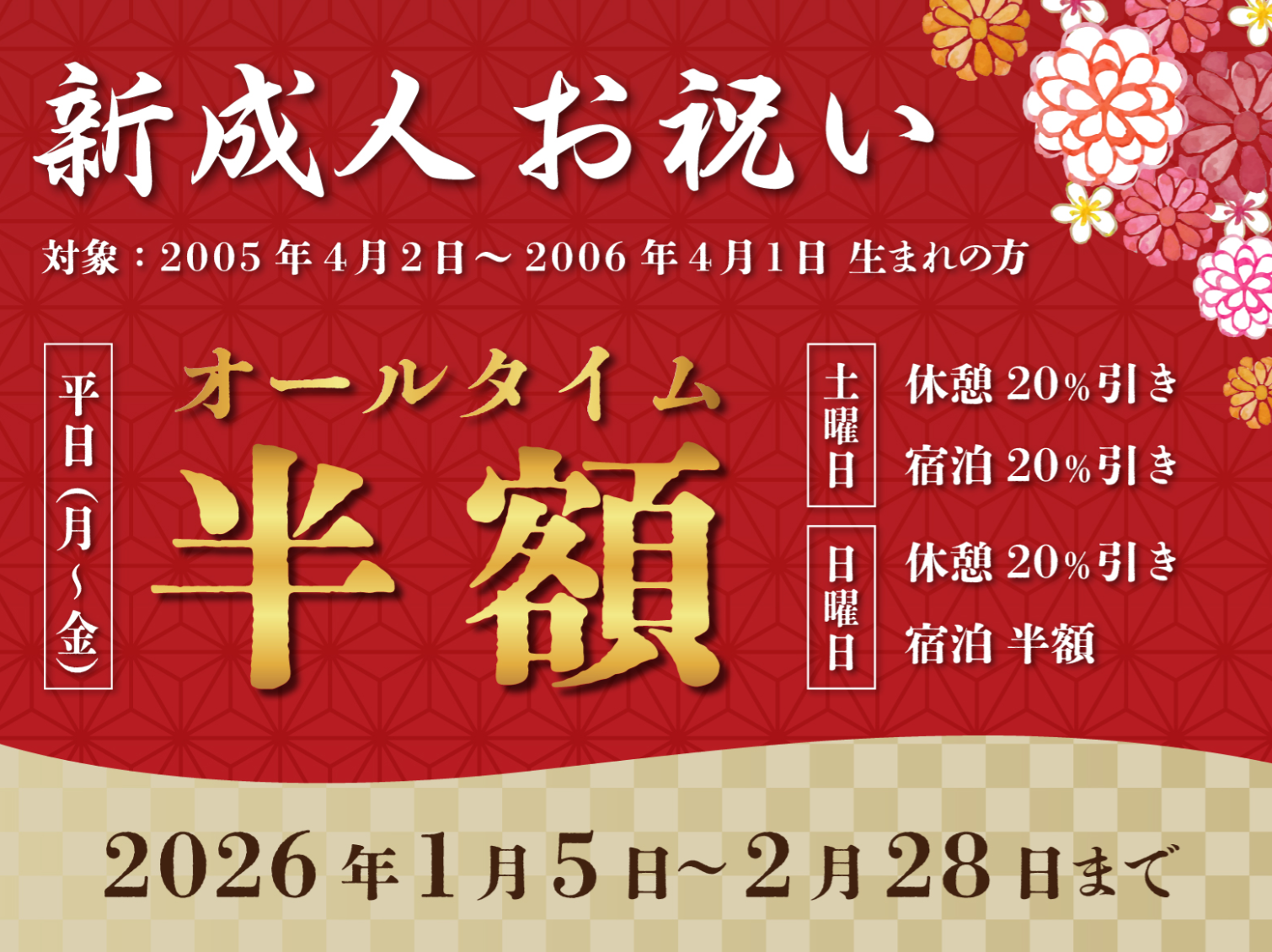 ★新成人お祝いキャンペーン ★【ホテル 魔法のリトルパンプキン ザ・シークレットガーデン 岡山】