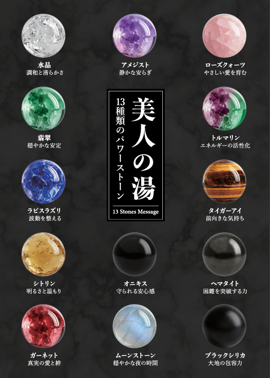 ラドンに13種のパワーストーンを加えた温泉でお肌ツルツル体ポカポカ